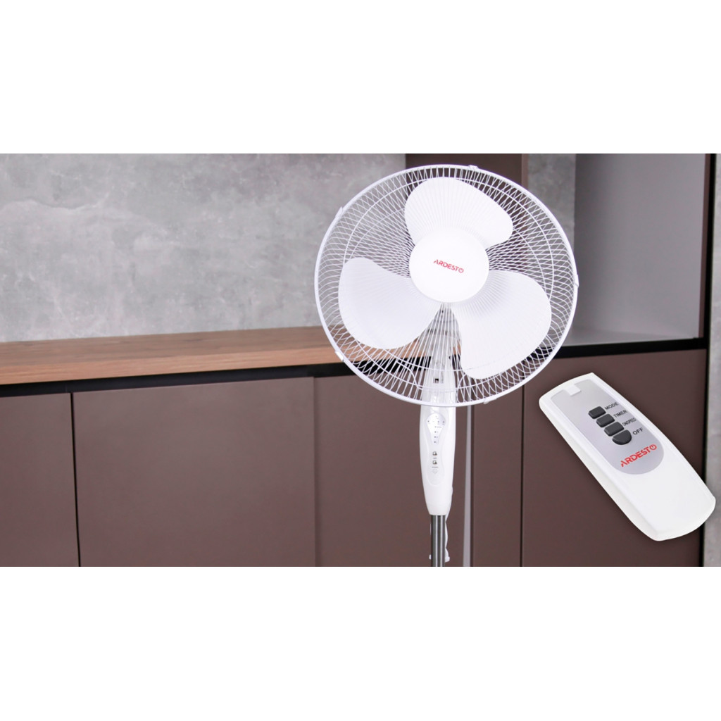 Вентилятор підлоговий Ardesto FN-R1608RW білого кольору з дистанційним управлінням і круглої опорою. Модель виконана з надійних, практичних і довговічних матеріалів.